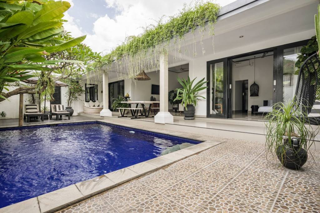 Step into the “Bali Oasis” at Kaum Villas, a modern haven nestled in the vibrant heart of Seminyak. Immerse yourself in the allure of Bali with a spacious boutique villa featuring two king bedrooms and an array of upscale amenities. Our villa is designed for both relaxation and entertainment, boasting a large private pool, an open-plan kitchen, en-suite bathrooms, high-speed WiFi, an invigorating outdoor shower, comfortable sun lounges, and a captivating alfresco dining area.
